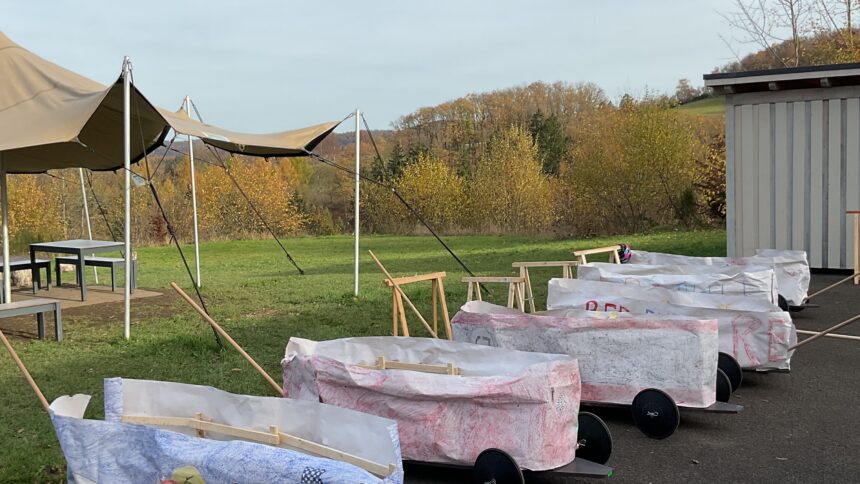 Gleich zum Auftakt der Klassenfahrt stand eine besondere Herausforderung an: Nachdem alle Schülerinnen und Schüler ihre Zimmer bezogen und sich eingerichtet hatten, begann der Bau der Seifenkisten. Pro Klasse wurden drei Seifenkisten gebaut und kreativ gestaltet. Mit Begeisterung, handwerklichem Geschick und guter Laune entstanden in kurzer Zeit die Fahrzeuge. Am Abend folgte ein echtes Highlight – eine Nachtwanderung ohne Taschenlampen. Gemeinsam machten sich die Klassen auf den Weg durch die Dunkelheit. Dabei stärkten die Kinder ihren Mut und erlebten die Natur einmal ganz anders.