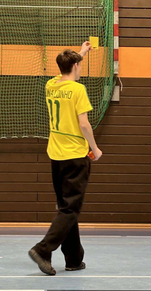Dazu wurde jede Klasse der Erprobungsstufe in zwei Teams aufgeteilt, insgesamt gab es also zehn Teams, welche jeweils circa drei bis vier Mal um den Sieg kämpften. Das taten sie zu 5. auf dem Spielfeld. Die beiden Jahrgangsstufen spielten gegeneinander. Alle Schüler*innen, welche nicht spielen konnten, feuerten ihre Klassenkamerad*innen von der Tribüne aus an. Manche von ihnen waren sogar als Cheerleader verkleidet! Die Organisation wurde von dem Schülersprecher der Oberstufe und einigen Lehrern übernommen. Greta,11 Jahre, berichtete uns, dass ihr das Spielen Freude bereitet hätte und sie es cool fände, wenn es so einen ORI–Cup ab jetzt jährlich geben würde. Diese Meinung teilte auch ihre Freundin Ylva. Noah und Leon hatten eine sehr ähnliche Position, allerdings würden sie sich über etwas größere Tore freuen. Schlussendlich hatten alle Spaß an diesem letzten Schultag vor den Osterferien. Die Klasse 5c hat übrigens das große ORI–Cup Turnier gewonnen. Herzlichen Glückwunsch zu diesem sensationellen Erfolg!