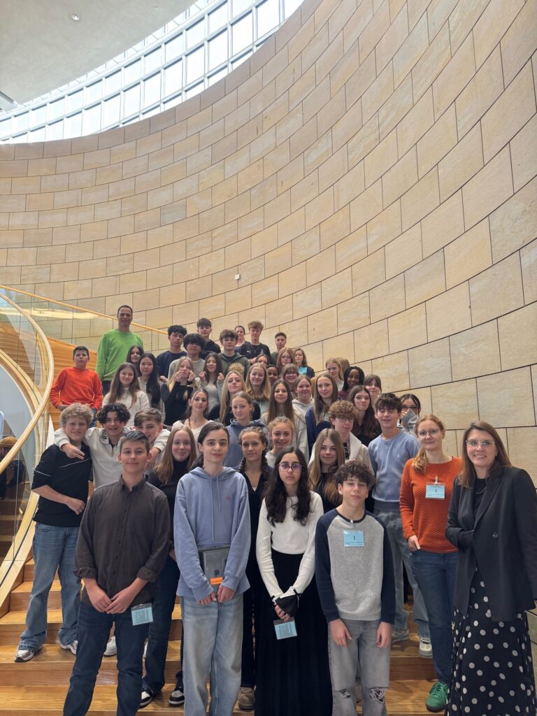 Am 26. Februar 2026 besuchten die Klassen 8b und 8c den Landtag Nordrhein-Westfalen in Düsseldorf. Nach der Ankunft und dem Sicherheitscheck nahmen die Schülerinnen und Schüler an einer spannenden Simulation im Plenarsaal teil, bei der sie selbst in die Rolle von Abgeordneten schlüpften und parlamentarische Abläufe kennenlernten.