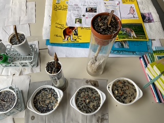Letzte Woche wurden Futterstationen für Vögel hergestellt und in der nächsten Woche in den Bäumen aufgehängt. Alle sind gespannt, ob und welche Vogelarten angelockt werden können.