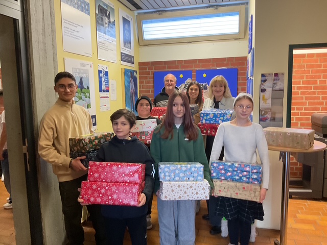 Anfang dieser Woche wurden die Schuhkartons für die Aktion „Weihnachten im Schuhkarton“ bei uns abgeholt und machen sich nun auf den Weg in die Ukraine. Ein herzliches Dankeschön an alle, die dazu beigetragen haben, Kindern, die sonst kaum Geschenke erhalten, eine Freude zu bereiten. Unsere Schulgemeinschaft hat erneut zahlreiche Päckchen gepackt und einige Schülerinnen und Schüler haben tatkräftig beim Tragen und Verladen geholfen.
