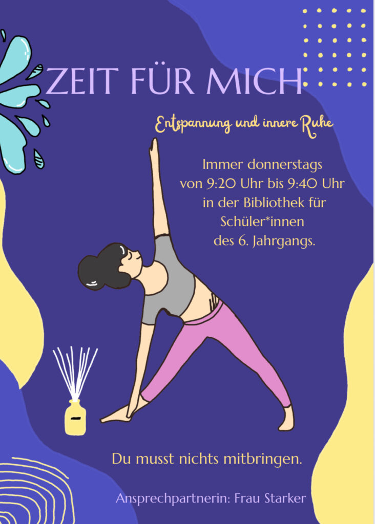 Entspanntes Pausenangebot für Schüler und Schülerinnen der Jahrgangsstufe 6: Immer donnerstags von 9:20-9:40 Uhr in der Bibliothek.